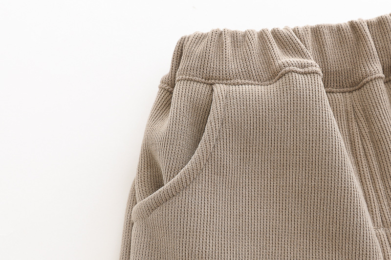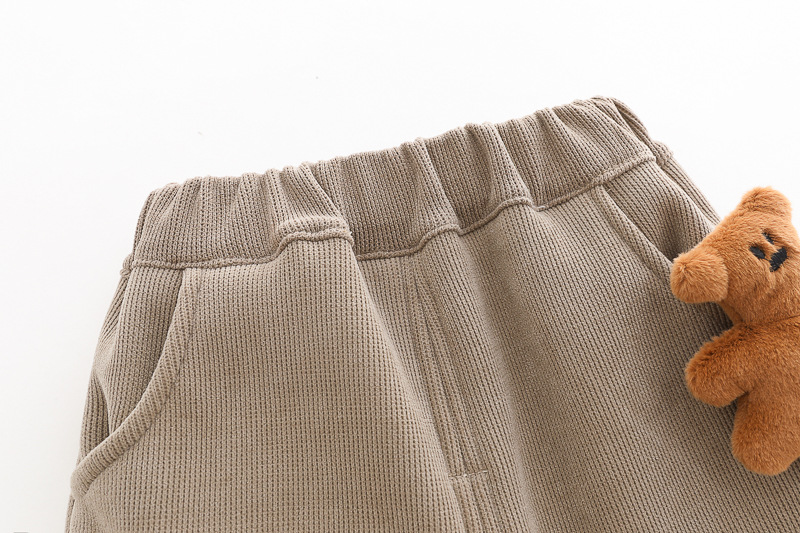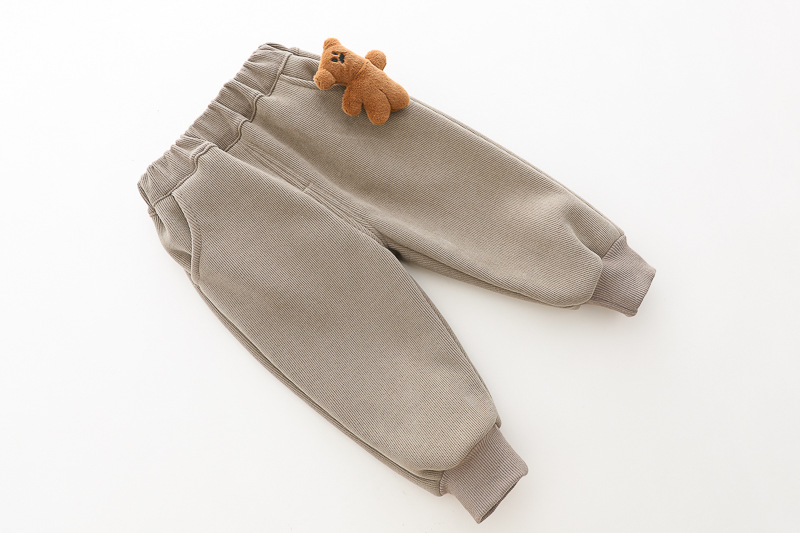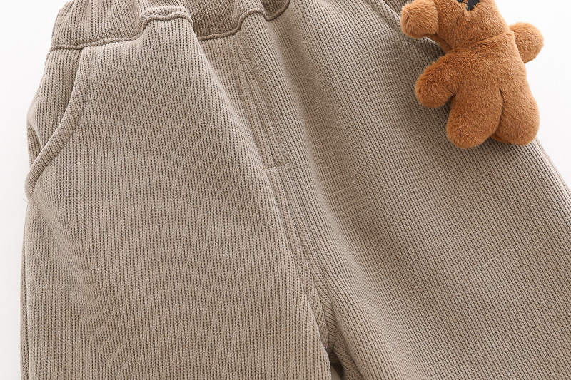 – Ватиран панталон в топъл кафяв нюанс с ластичен колан и маншети, изработен от висококачествена джинсова материя.