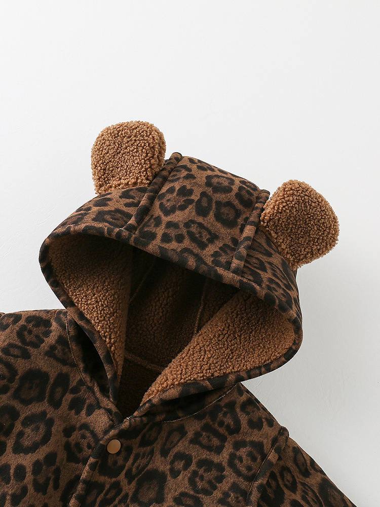 Premium Гащеризон от Еко Велур с Качулка, 3Д Ушички и Плюшена Подплата Leopard Missy
