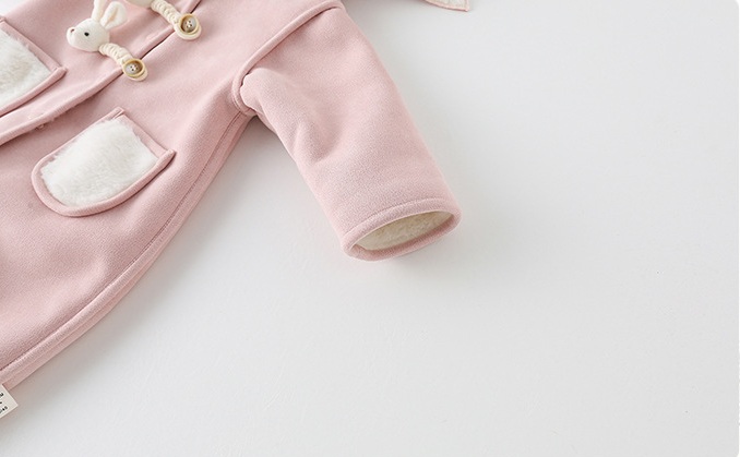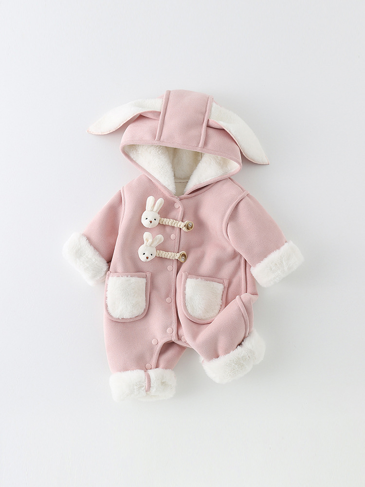🩷 Пухкав зимен гащеризон с очарователен зайчешки дизайн, подходящ за малки дами.