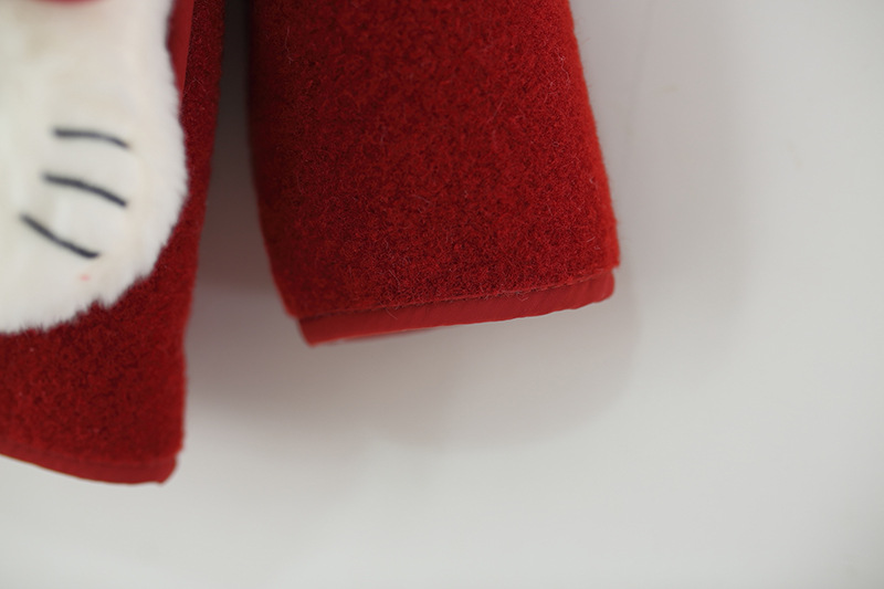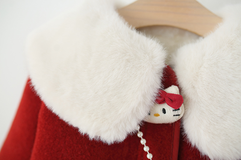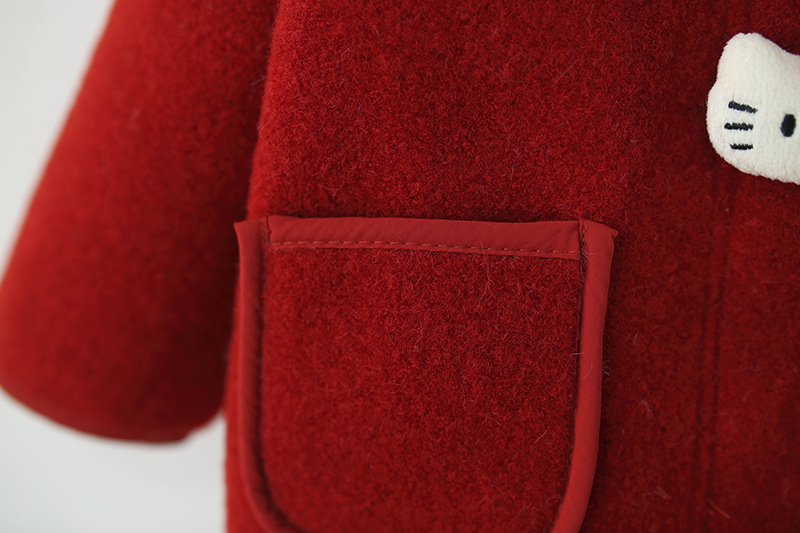 – Палто, изработено от висококачествен еко велур в наситено червен цвят + топла плюшена подплата за топлина и комфорт. Моделът е с пухкава яка тип „Питър Пан“ от мек еко пух, която добавя елегантен и топъл акцент. Закопчава се отпред с цип + добавено прехлупване за максимално запазване на топлината. Добавени са и два практични джоба. Декориран е с две 3D котета, които завършват визията.