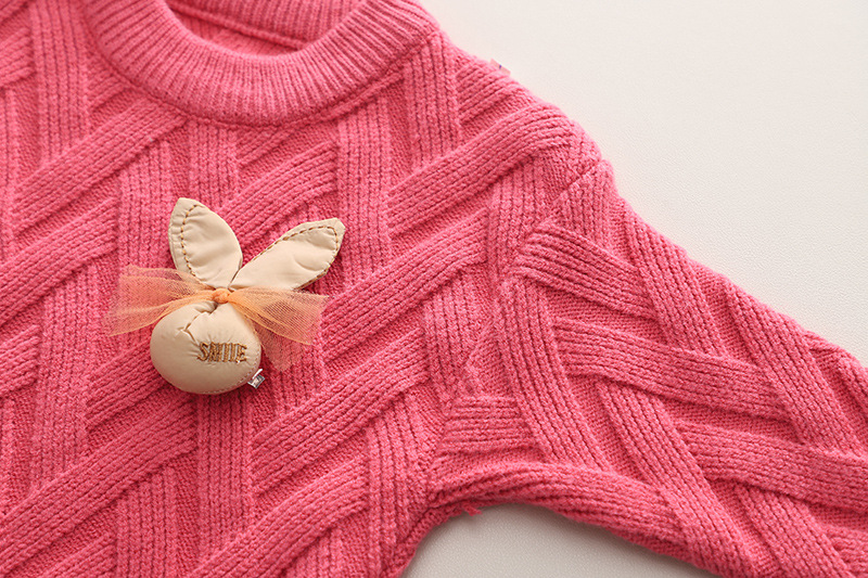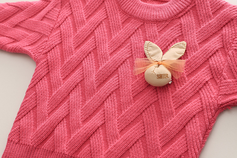 -Страхотен пуловер в цвят циклама с висококачествена изработка и едра плетка в преплетени коловози. Модел с класическа кройка и подарък – 3D брошка със зайче, която може да се ползва и като шнола.