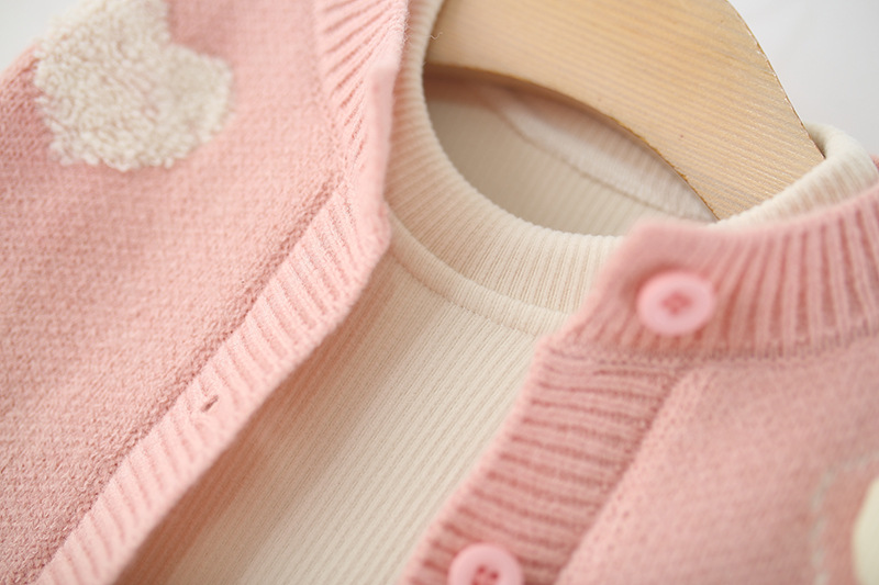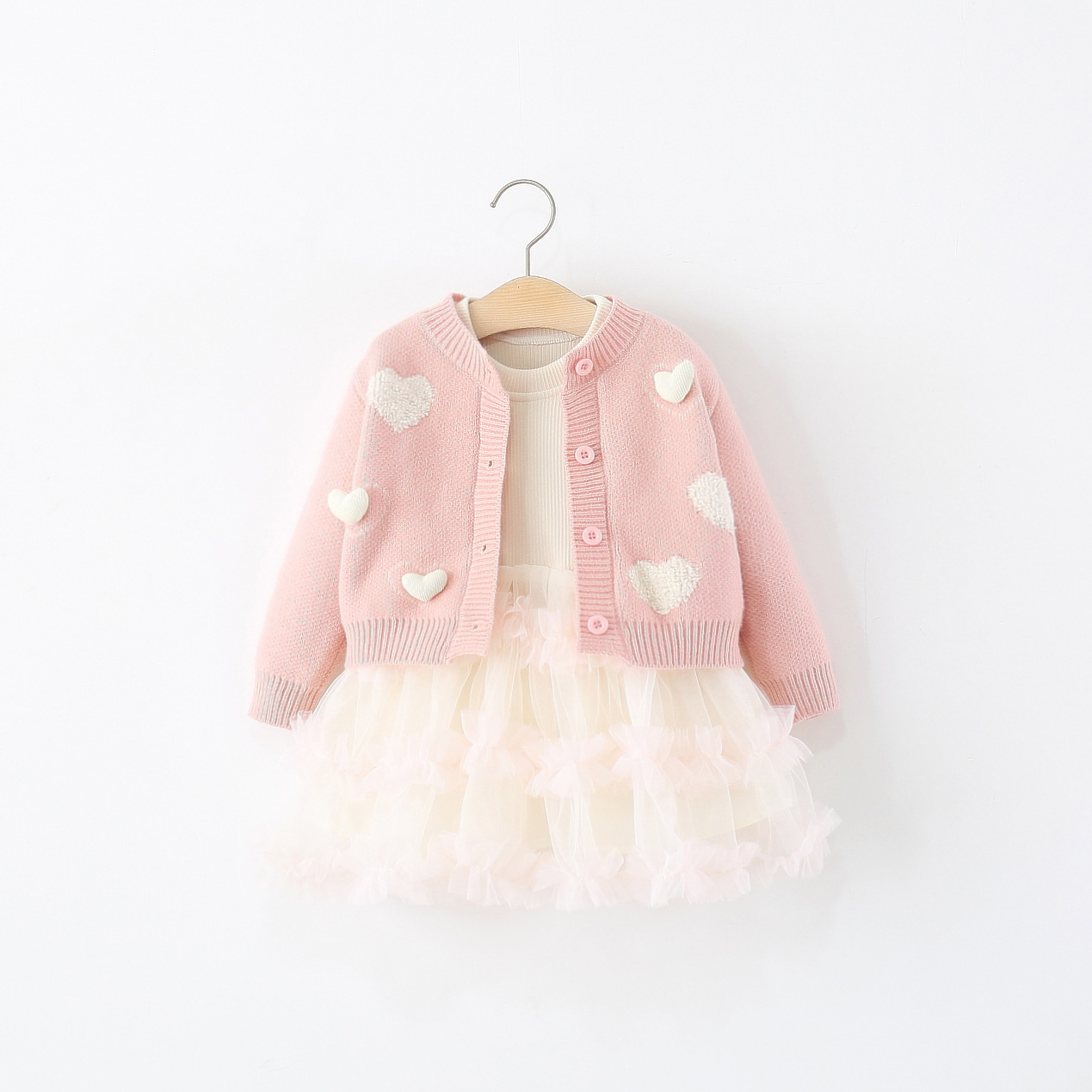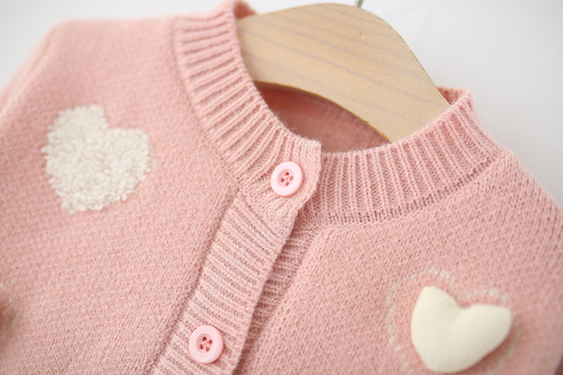 – Плетена жилетка в нежно розово, с ръчно пришити 3D сърчица и сърцевидна плетка – съвършен акцент към всеки тоалет. Закопчаване посредством копчета по дължината за лесно обличане.