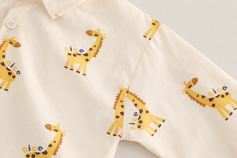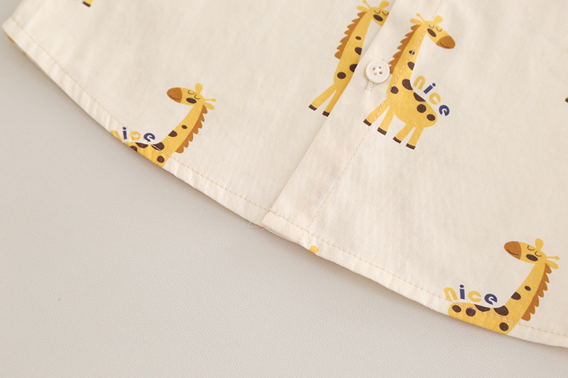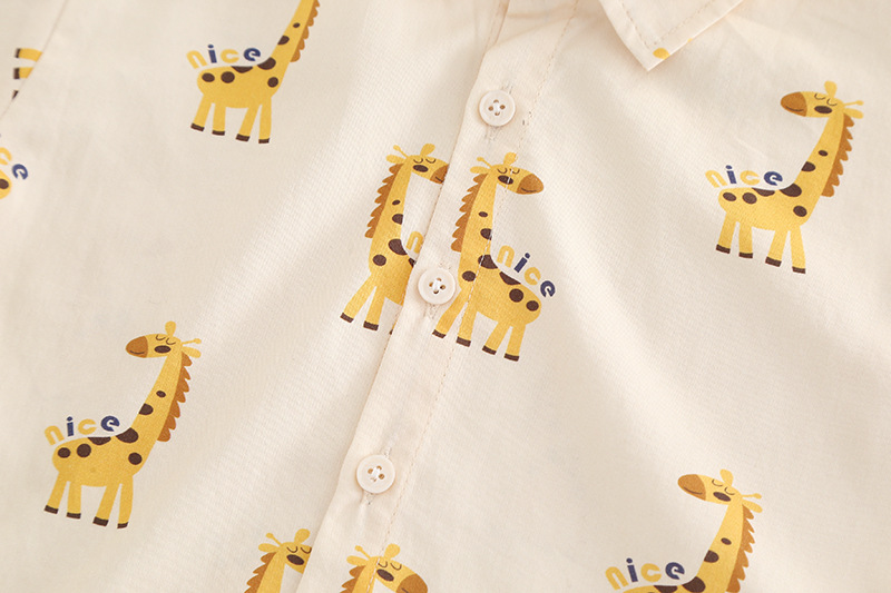 –Риза от кремав памук с цялостен принт на жирафчета – в същия стил като апликацията на елека, модел с класическа яка, копчета отпред и дълги ръкави, които могат да се навиват.
